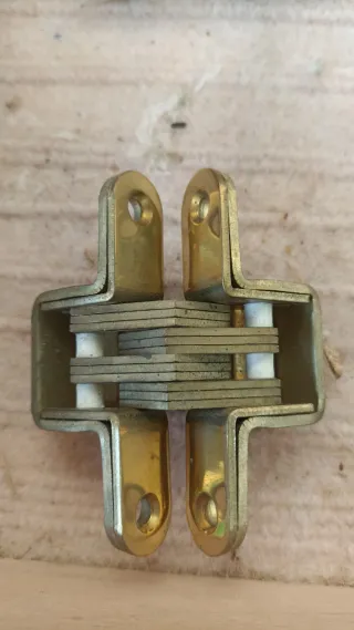 Cerniera a scomparsa per mobili Marca Progress famosa nel mondo per la sua qualità. Disponibili sei pezzi, prezzo cadauno. Rimanenza di magazzino Disponibili sei pezzi Descrizione della cerniera invisibile PROGRESS - STRUMENTI PROGRESS: • Meccanismo interamente in ottone e assi in acciaio inossidabile