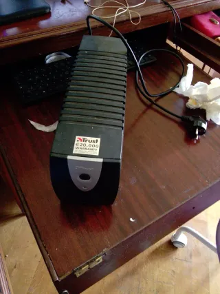 Gruppo di continuità (UPS) marca Trust, modello con garanzia di 20.000. - Colore nero. - Design a griglia.
