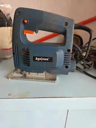 Seghetto elettrico Agojama, ideale per lavori di bricolage e fai-da-te. - Colore blu e arancione. - Design ergonomico per una presa comoda. - Base in metallo per stabilità.