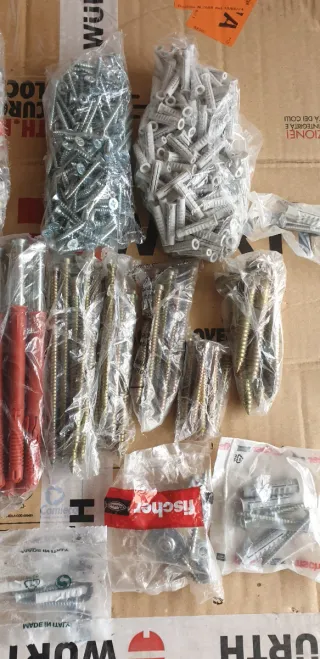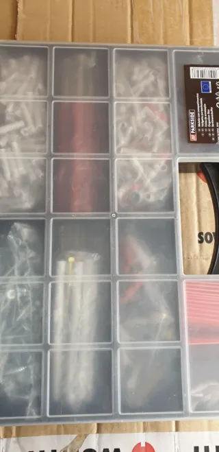 Valigetta organizer Parkside nuova con scomparti trasparenti pieni. Viene fornita con un numero imprecisato di viti e tasselli nuovi e usati acquistati in negozio specializzato. - Diversi vani per una facile organizzazione. Contiene: Viti nuove Tasselli nuovi Viti per infissi nuove Grosse viti nuove Diverse Viti e tasseli lunghi nuovi Sacchetto di vecchie viti e tasselli Mix di vecchi tasselli nuovi piccoli sacchetti di phisher Tutto come da foto