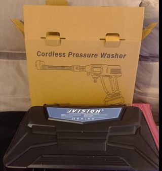 Idropulitrice a batteria portatile, ideale per la pulizia. - Due batterie da 21V incluse. - Tubo flessibile in dotazione. - Manuale di istruzioni.