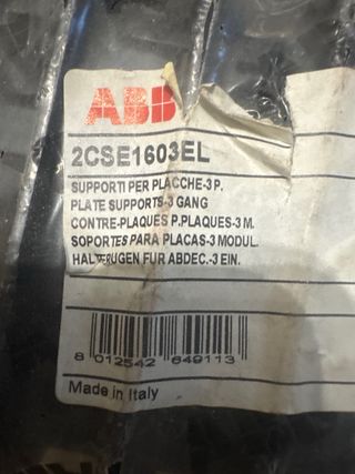 Set di 18 supporti per placche elettriche ABB. - Modello: 2CSE1603EL - Quantità: 10 pezzi per confezione - Colore: Nero - Materiale: Plastica - Prodotto in Italia