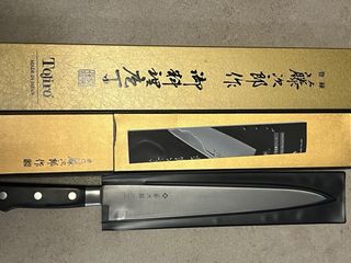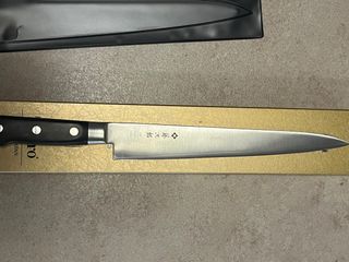 Coltello professionale da cucina, ideale per chef e appassionati. - Lama in acciaio inossidabile. - Manico ergonomico in bachelite. - Lunghezza lama: 24 cm. - Made in Japan.