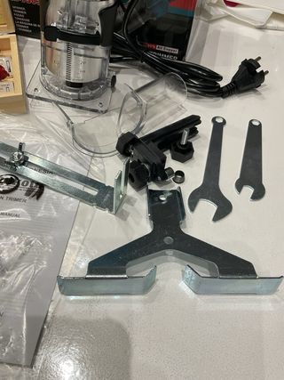 Fresatrice per legno, ideale per lavori di rifinitura. - Motore da 750 Wcon avvolgimento in rame al 100%. - Base trasparente per una migliore visibilità. - Regolazione micrometrica della profondità.