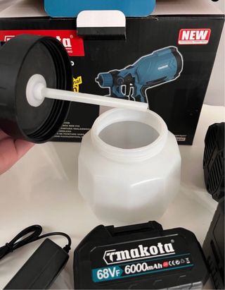 Pistola a spruzzo per vernice a batteria. - Modello: TM-JH - Batteria: 68VF 6000mAh - Include caricabatterie e accessori per la pulizia.