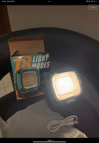 Lampada faro a LED con diverse modalità luminose e batteria ricaricabile. - 18 modalità luminose. - Batteria da 5000mAh. retro è dotato di un forte attacco magnetico, che consente di attaccarlo a qualsiasi superficie metallica, ad esempio telai in ferro, officine e coperture per auto. Quando sei in campeggio, puoi anche aprire i ganci sul retro e appenderlo ovunque, come tende e rami. Batteria integrata che fornisce fino a 5000 mAh. Dotato di un cavo USB, consente una ricarica rapida e conveniente. Inoltre, può fungere da power bank di emergenza per ricaricare il tuo telefono e altri dispositivi in caso di emergenza.
