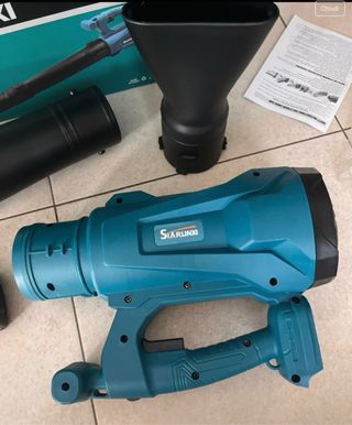Soffiatore a batteria STARLINXI, modello BJ48v, con una potenza di 48V. Ideale per la pulizia di foglie e detriti. - Colore: Blu e nero. - Include batteria e caricabatterie. - Tubo di prolunga incluso. Leggero e menegevole, un potente getto d'aria per eliminare foglie bagnate o secche da prati, vialetti, Marciapiede, strade, o per qualsiasi altro tipo come asciugare la moto, l'auto. Il soffiatore Makota è dotato di una batteria da 88Vf 8000 mAh e pesa circa 3 kg. Soffiatore a batteria con 6 velocità regolabili in base alle necessita. Batteria da 88 Vf 8 mAh inclusa con led indicatore di carica. Potenza: 1080W Giri motore: 18000 r/