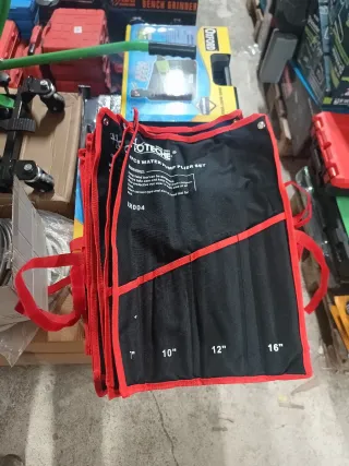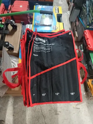 Fodero porta attrezzi HOTECHE in tessuto nero con bordi rossi. Ideale per organizzare chiavi o altri piccoli utensili. - Chiusura con velcro. - Tasche interne. - Misure indicate: 10, 12, 16.