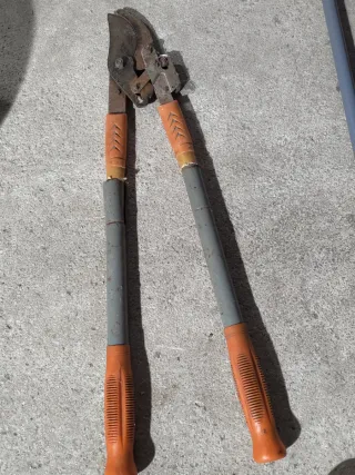 Forbici da potatura con manici arancioni e grigi. - Lame in metallo. - Manici con impugnatura antiscivolo.