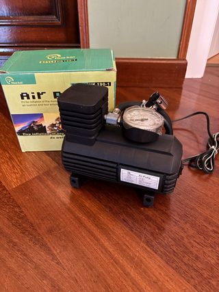 Mini compressore d'aria Hua Kai, modello HK 190-1. Utile per gonfiare pneumatici di moto, auto e altri veicoli. - Manometro integrato. - Design compatto e portatile.