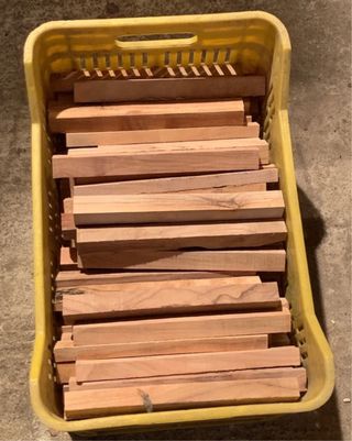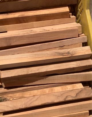 Lotti di scarti di legno di ulivo, ideali per lavori creativi o decorativi. - 6 pezzi inclusi. - Lunghezza 34 cm - Larghezza 3,5 cm - Spessore 2 cm