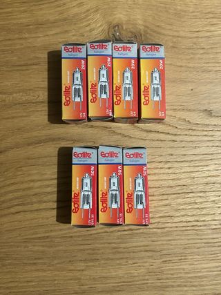 Set di lampadine alogene Solite. - 4 lampadine da 20W, attacco G4. - 3 lampadine da 50W, attacco GY6.35.