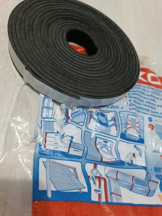 Rotolo di guarnizione adesiva multiuso a cellule chiuse. Misura lunghezza cm 550 Spessore cm 2 - Materiale: gomma - Colore: nero. - Autoadesiva.