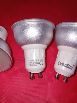 Set di lampadine a LED con attacco GU10, ideali per faretti. 8 pezzi - Potenza: 5.5W - Tipo di luce: Fredda - Tensione: 220-240V - Luminosità: 420 Lumen - Marca: ExtraStar Senza scatola originale. Vendita in blocco