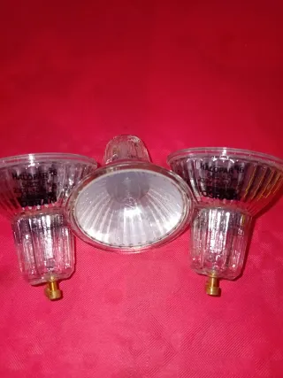 Set di tre lampadine alogene OSRAM HALOPAR 16. - Modello: HALOPAR 16 - Marca: OSRAM - Tipo: Lampadina alogena - Potenza: 50W - Voltaggio: 230V Luce calda, tre pezzi senza scatola originale. Vendo intero set.
