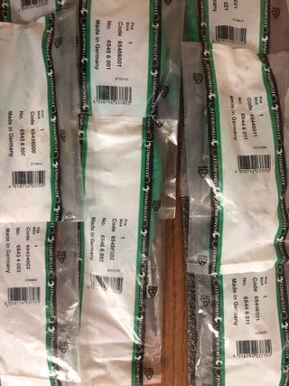 Set di 50 fascette stringitubo originali ABA. - Dimensioni: da 19 mm a 28 mm. - Materiale: metallo. - Origine: Svezia.