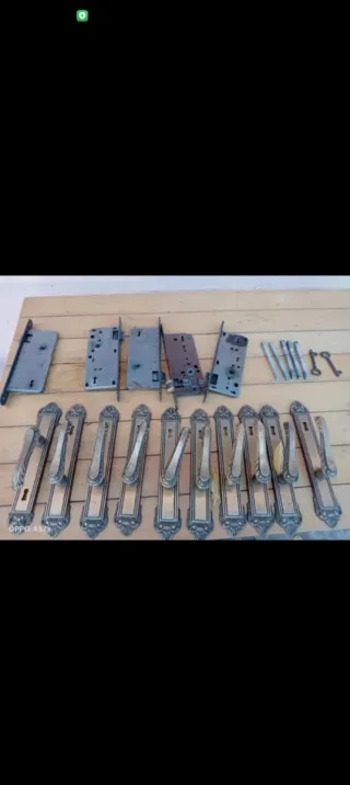 Set di maniglie e serrature vintage anni 80 in metallo. - Design classico ed elegante. - Ideali per restauri o progetti di arredamento retrò. - Materiale resistente e durevole.