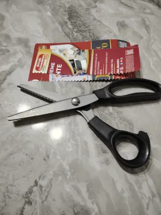 Forbici con lama seghettata, adatte sia per hobbisti che per professionisti. - Lama dentata per un taglio preciso. - Impugnatura comoda.