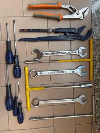 Lotto di attrezzi vari, ideali per lavori di fai da te o professionali. - Pinza regolabile - Chiave a pappagallo - Set di chiavi combinate - Cacciaviti 395"} Vendo lotto attrezzi da lavoro composto da: - 1 chiave a pappagallo - 1 pinza regolabile - 3 chiavi combinate: 21/23, 22 e 24 - 3 chiavi a T lunghe con bussola: 8 mm, 10 mm e 13 mm - 5 cacciaviti (taglio e stella) Attrezzi usati ma perfettamente funzionanti. Vendo tutto in blocco come da foto. Prezzo 35€ trattabili. Ritiro a Orta di Atella