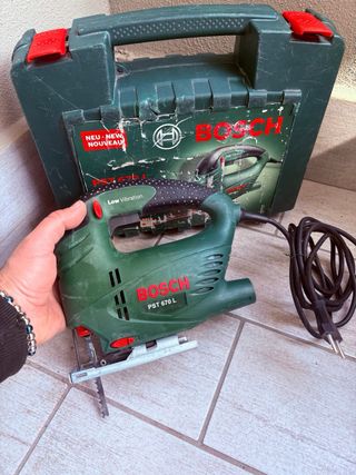 Seghetto alternativo Bosch PST 670 L completo di valigetta. - Modello: PST 670 L - Marca: Bosch - Include valigetta per il trasporto Vendo seghetto alternativo Bosch PST 670 L originale, perfettamente funzionante. Completo di valigetta Bosch come da foto. Ideale per lavori di fai da te, taglio legno, plastica e materiali leggeri. Caratteristiche: • Sistema Low Vibration • Impugnatura comoda • Alimentazione a corrente • Compreso di valigetta Condizioni buone. 💰 Prezzo 30,99€ Ritiro a mano oppure spedizione.