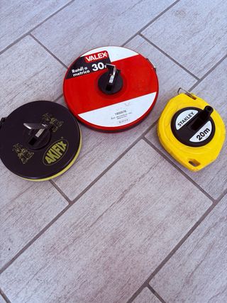 Set di tre rotelle metriche da lavoro. - Rotella Valex da 30m. - Rotella Stanley da 20m. - Rotella Akifix. Vendo 3 rotelle metriche da lavoro in buone condizioni e perfettamente funzionanti. ✔ Stanley 20 metri ✔ Valex 30 metri ✔ Akifix 20 metri Ideali per lavori di edilizia, muratori, geometri e fai da te. Vendita in blocco. 💰 Prezzo 23,99€ Ritiro a mano.