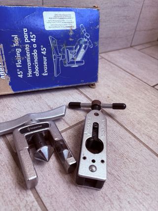 Vendo cartellatrice professionale a 45° marca Imperial, ideale per realizzare cartelle su tubi di rame per impianti di climatizzazione, refrigerazione e idraulica. Attrezzo robusto e preciso, molto usato da frigoristi e installatori di condizionatori. ✔ Strumento professionale ✔ Marca Imperial ✔ Per cartellature a 45° su tubi rame ✔ Condizioni buone come da foto ✔ Completo con scatola Perfetto per chi lavora nel settore o per chi fa manutenzioni. 📍 Possibilità di consegna a mano o spedizione. 💰 Prezzo trattabile. Se vedete l’annuncio significa che è disponibile.