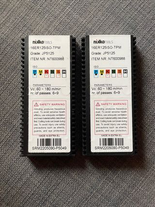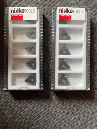 Set di inserti per filettatura NIKKO TOOLS. - Confezione da 10 inserti. - Inserti triangolari con foro centrale.