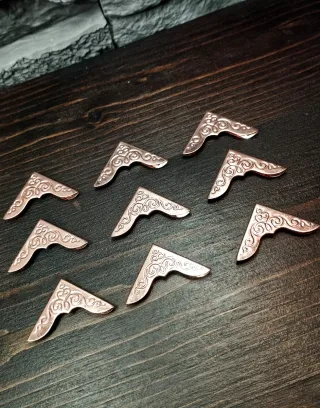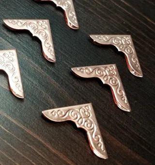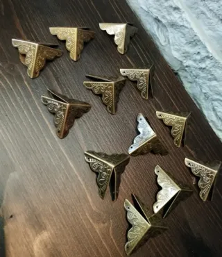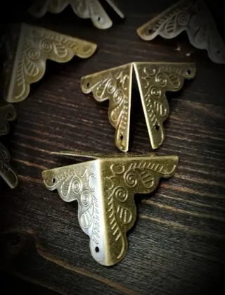 Lotto Pezzi 12 protezione angoli decorativi in metallo . Accessori ferramenta inserti para spigoli fai da te per la protezione dei bordi in metallo para spigoli per scatole tavoli credenze design ecc Colore ottone / ottonati bronzo Effetto vintage antico anticato Paraspigoli decorativo hobby angolari metallo scaffali bordi creativo se decorazioni per legno. Per progetti fai da te hobbistica ,restauro di mobili, portagioie, scatole , cornici, quadri ecc Paraurti mobili angolari Misure descritte in foto. Nuovi