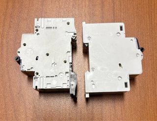 Vendo due interruttori automatici, uno GE C16 e uno Bticino C20. - Interruttore GE C16, 4500, 230V~ - Interruttore Bticino C20, 4500, 230V~, salvavita, Δn 0,03A - Etichetta ASD scritta a mano su uno degli interruttori.