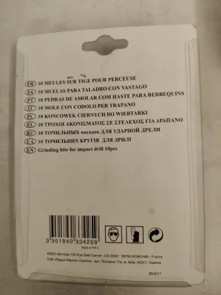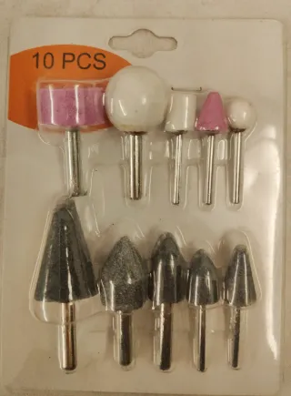 Set di 10 punte abrasive per trapano. - Diverse forme e dimensioni per varie lavorazioni. Nuove nella scatola originale!