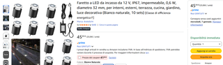 Faretto a LED da incasso da 12 V, IP67, impermeabile, 0,6 W, diametro 32 mm, per interni, esterni, terrazza, cucina, giardino, luce decorativa (Bianco naturale, 10 sets), nuovo, comprato su Amazon a 45€ e mai utilizzato.