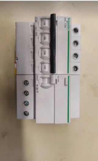 Interruttore magnetotermico Schneider Electric. - Modello: C32 - Corrente nominale: 32A - Tensione nominale: 400V - Sensibilità: 300mA - Tipo: C - Interruzione: 15000