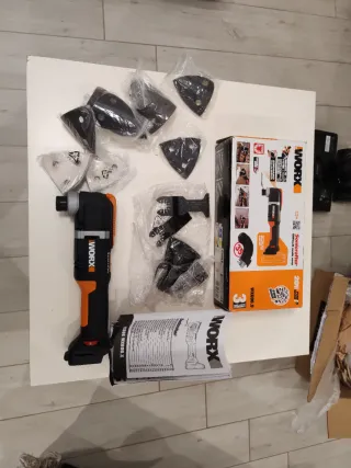 Multiutensile oscillante Worx, modello WX696.9, con accessori. - Utensile oscillante. - Accessori inclusi. - Scatola originale. Mai utilizzato