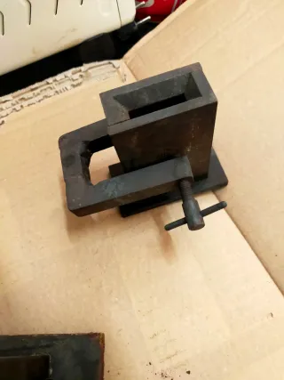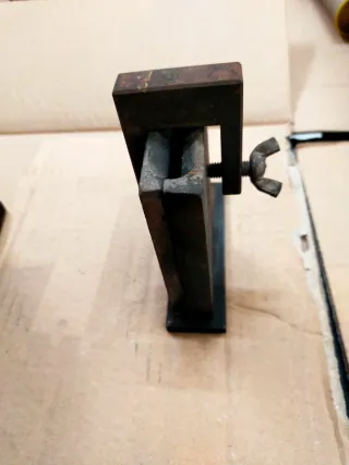 Staffa per la fusione di metalli, ideale per lastre. - Struttura robusta in metallo. - Meccanismo di serraggio con vite e farfalla.