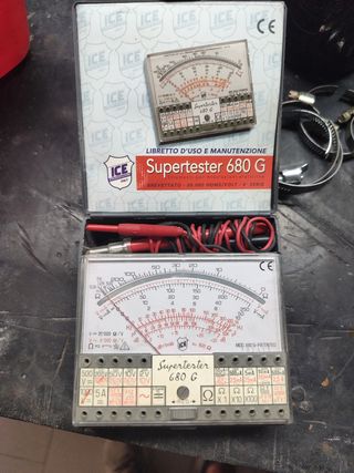 Supertester ICE 680 G, un tester vintage in buone condizioni estetiche. - Tester analogico ICE modello 680 G. - Include puntali di prova. - Made in Italy.