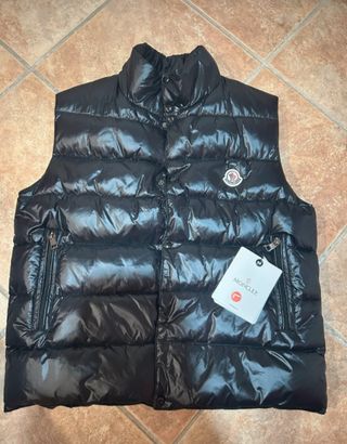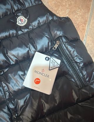 Gilet Moncler nero, un capo essenziale per un look alla moda. - Logo Moncler sul petto. - Chiusura con zip. - Tasche laterali con zip.