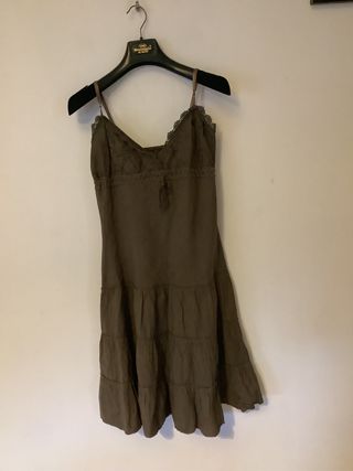 Vestito da donna in puro lino, perfetto per le giornate più calde. - Tessuto 100% lino - Dettagli in pizzo - Gonna a balze