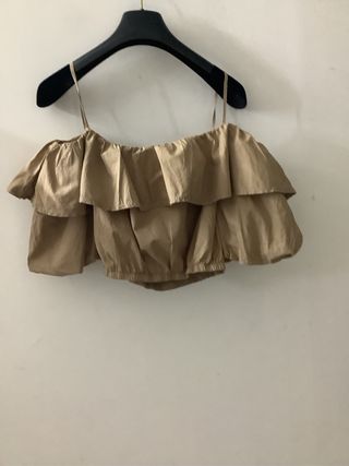 Camicetta da donna con un design a volant, perfetta per un look alla moda. - Tessuto in cotone leggero. - Spalline sottili regolabili. - Orlo elasticizzato per una vestibilità comoda.
