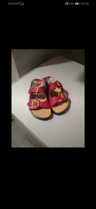 Comode ciabatte da passeggio per bambina con tema Frozen. - Taglia 23. - Design con personaggi del film. - Chiusura a doppio velcro.