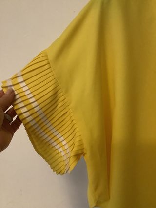 Elegante camicia da donna con un design moderno e raffinato. - Maniche a pipistrello ampie e svolazzanti. - Corpino con elastico arricciato. - Scollo a V incrociato. - Tessuto leggero e plissettato.