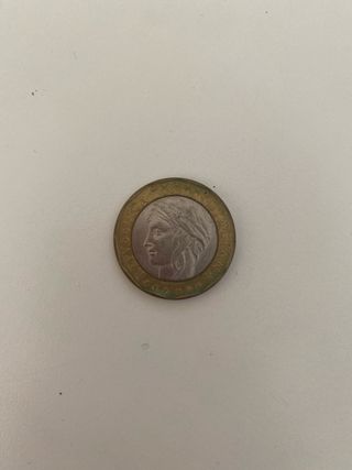 Monete antiche in metallo. - Monete con disegno a rilievo. - Bordo esterno in metallo dorato. - Parte centrale in metallo argentato.