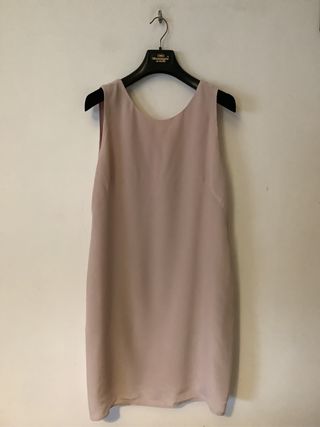 Elegante vestito da donna in pura seta. - Tessuto leggero e fluido. - Design senza maniche. - Colore rosa tenue.