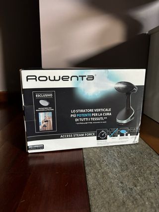 Stiratore verticale Rowenta Access Steam Force, potente per la cura di tutti i tessuti. Usato 1 volta. - Pronto in 20 secondi. - Microfibra per rimuovere la polvere.