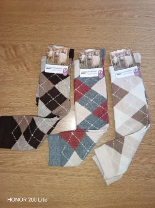 Set di tre paia di gambaletti in pura lana merino, ideali per mantenere il calore. Il design a rombi dona un tocco classico. ARTICOLO DA MONTAGNA 🗻 - Taglia 35-40. - Morbidi e confortevoli. - Design a rombi in diverse tonalità.