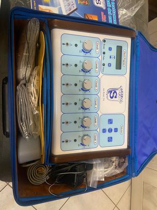 Elettrostimolatore Seiko Koral 278, completo di accessori. - Sei canali indipendenti. - Display per controllo programma. - Pulsanti di selezione e avvio. - Cavi e accessori inclusi.