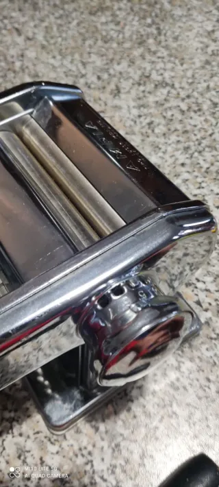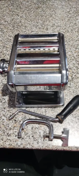 Macchina per la preparazione della pasta fresca fatta in casa. - Struttura in metallo lucido. - Regolazione dello spessore della sfoglia.
