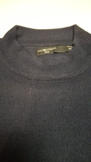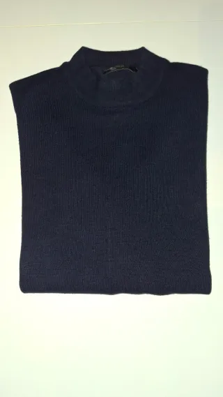 Maglione girocollo blu in lana, taglia M. Un capo versatile e confortevole. - Tessuto in lana morbida. - Collo alto. - Maniche lunghe.