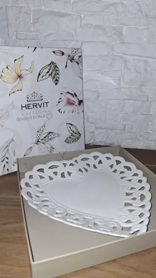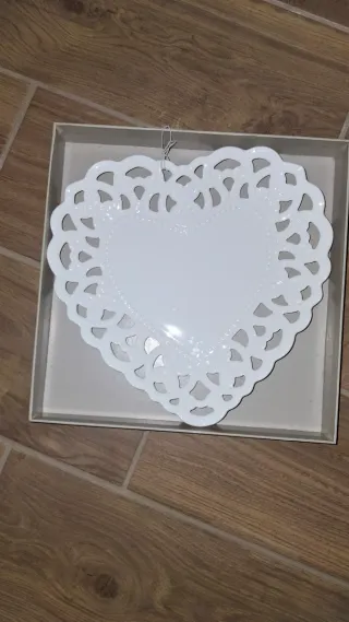 Delicato piatto porcellana a forma di cuore, perfetto per aggiungere un tocco di eleganza. - Colore bianco. - Design traforato. - Cofanetto colorato.