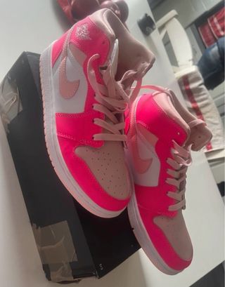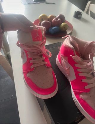 Scarpe Jordan in ottime condizioni, numero 38. - Design bicolore beige e rosa acceso. - Modello high-top.