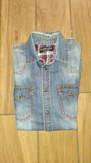 Camicia in denim da uomo, modello western. - Tessuto denim. - Chiusura con bottoni. - Due tasche sul petto. - Cuciture a contrasto.